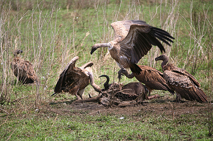 Грифы доедают гну, наевшиеся сидят переваривают в трансе