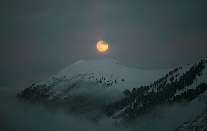 Восход луны у ледника Хинтертукс (Hintertuxer Gletscher) в Австрии