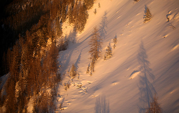 Склон Эгюий дю Миди (Aiguille du Midi, 3842 м) на закате
