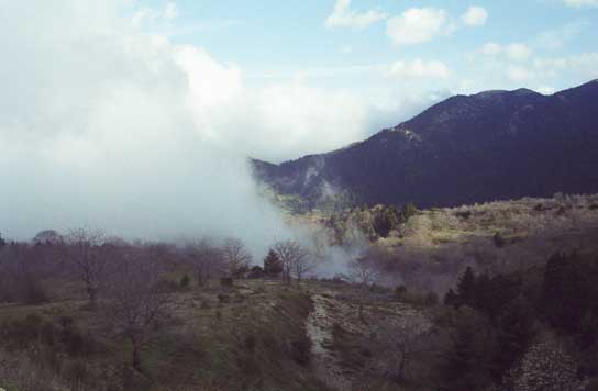 Перед самым перевалом, за которым дорога через апельсиновые рощи