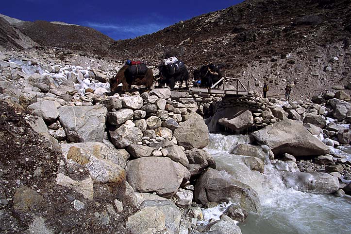 Яки на мосту перед Туглой по пути из Дингбоче в Лобуче.
