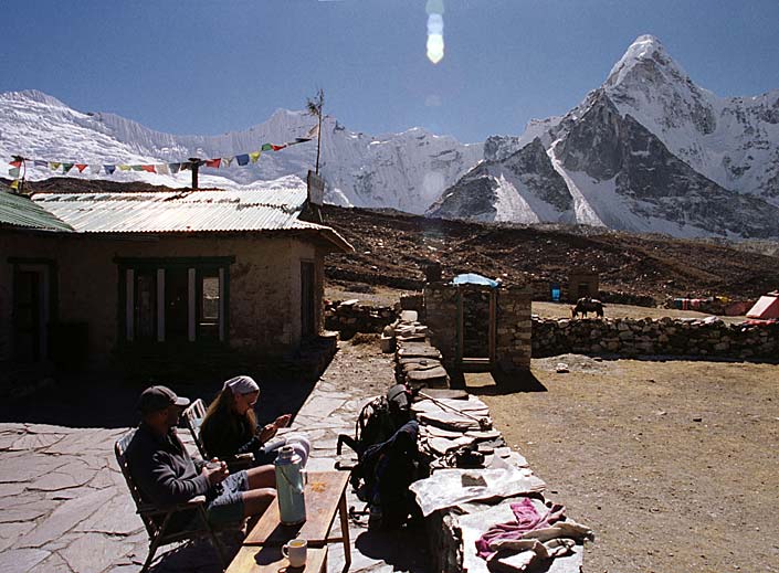 Двор гостиницы в Чхукхунге - завтрак с видом на Ама Даблам.