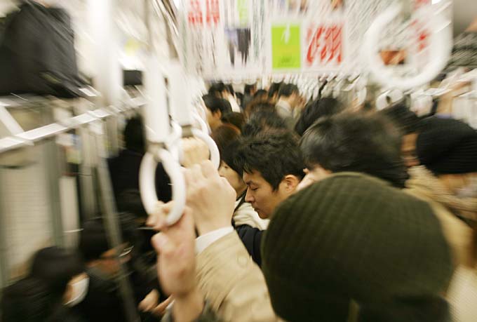 Полночь в токийском метро. Час-пик.