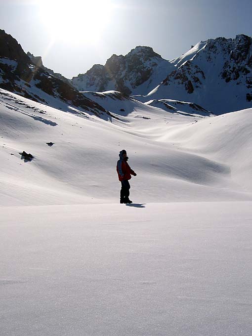 Альпенград. Высокогорное плато в цирке над ледником Туюк-Су, в трех часах ходьбы от горнолыжной базы Чимбулак под Алма-Атой. Потрясающие виды. Летом здесь можно ставить лагерь, отсюда за пару часов можно добраться до вершины пика Амангельды, что около 4000 м, и сходить на другие горы. В общем, популярное место.