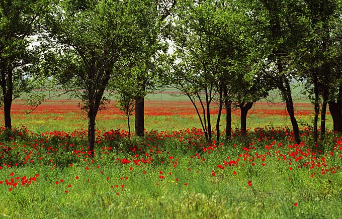 Маки в степи у киргизской границы. Незабываемый вид цветущих сорняков радует глаз в конце апреля - начале мая. Так что соберетесь в Бишкек на майские праздники - летите в Алма-Ату и потом 250 км на машине или автобусе через маковые поля.