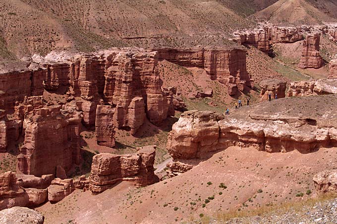 "Долина замков" на подступах к Чарынскому каньону. Небольшое по сравнению с собственно каньоном, но очень занимательное ущелье - причудливые скалы, прохладные пещеры. Путь от большой дороги к каньону обычно проходит либо над "Долиной замков", либо непосредственно по ней.
