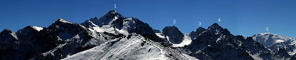 м). 2. Пик Пионер (4030). 3. Пик Амангельды (4000). 4. Пик Абая (4010). 5. Пик