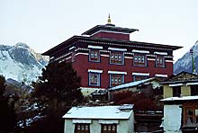 Монастырь Тенгпоче основал Лама Гулу, монах из Кхумджунга, по указанию настоятеля знаменитого Ронгбукского монастыря в Тибете, в северных предгорьях Джомолунгмы. Строительство основного храма завершилось в 1919 году. Тенгпоче – главный, но не старейший монастырь Кхумбу. По преданию, буддизм принес шерпам Лама Санге Дордже (Lama Sange Dorje/Sangwa Dorje) – пятая реинкарнация ламы Ронгбукского монастыря. В конце XVII века он перелетел через Гималаи и приземлился в южных предгорьях Джомолунгмы – в Кхумбу, оставив отпечатки своих божественных ступней в Пангбоче и Тенгпоче. Он же основал первые гомпы – в Пангбоче и в Таме. |