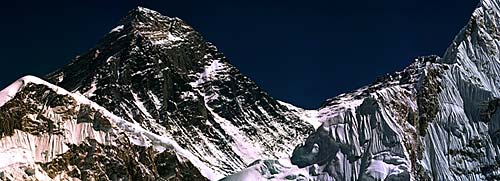 Пирамида голой каменной южной стены Эвереста доминирует над кажущейся с этой точки огромной Нуптце. С Кала Паттара хорошо виден Западный хребет, пройденный только через 10 лет после знаменитого восхождения Эдмунда Хиллари и Тенцинга Норгея, добавшихся до вершины через Юго-Западное седло. Этот маршрут (цирк и седло), прозванный за относительную техническую доступность “ячьей тропой”, можно рассмотреть, пройдя от вершины Кала Паттара по хребту в сторону Пумори.