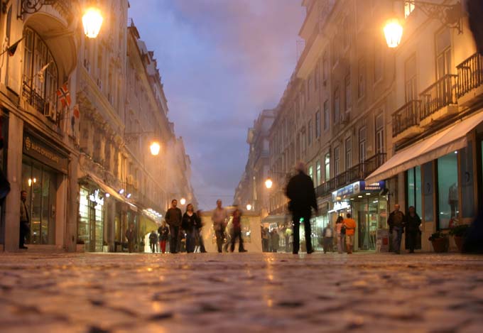 Лисабон. Улица в Байше, дым - каштаны жарят.
