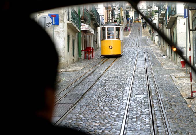 Фуникулер Бика в Лисабоне. Дворник - на ручном управлении.