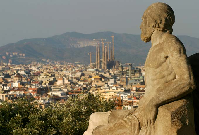 Саграда Фамилья с холма Монжуик в Барселоне.
