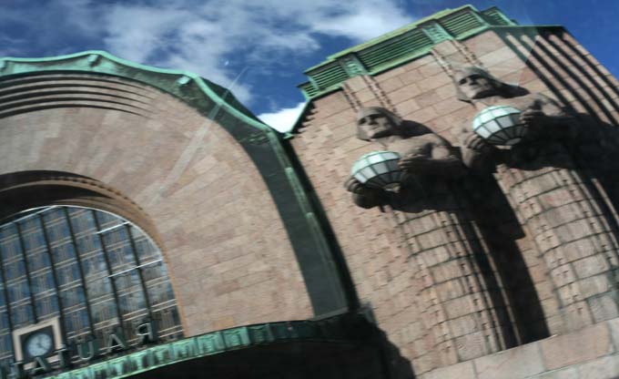 Фонарики Эмила Викстрёма на фасаде вокзала в Хельсинки.
