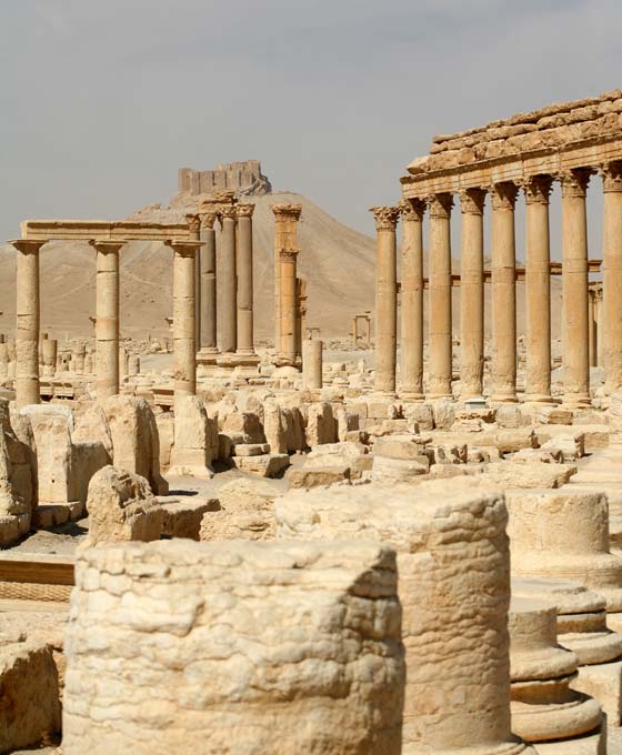Древнеримская Пальмира и замок друзов на холме.